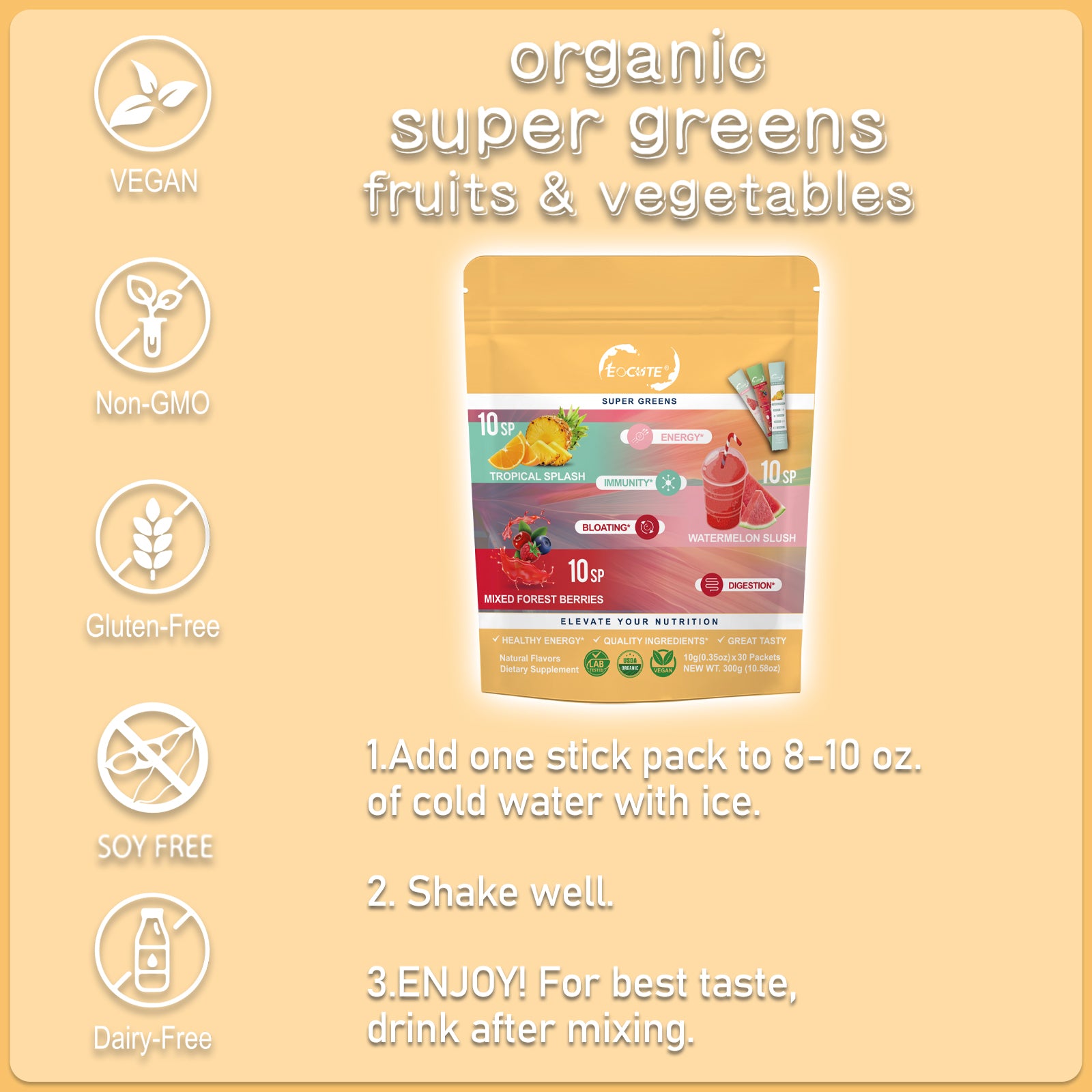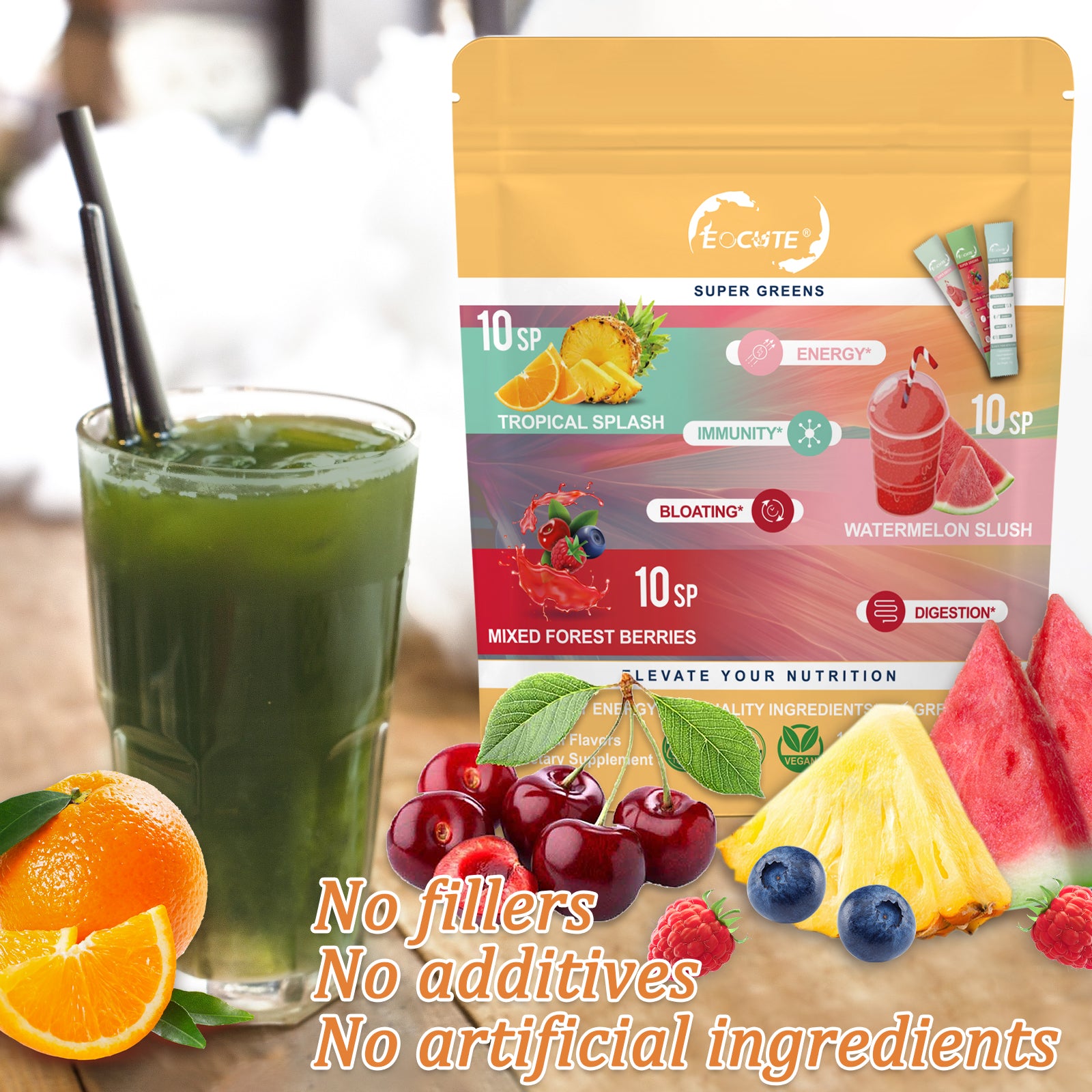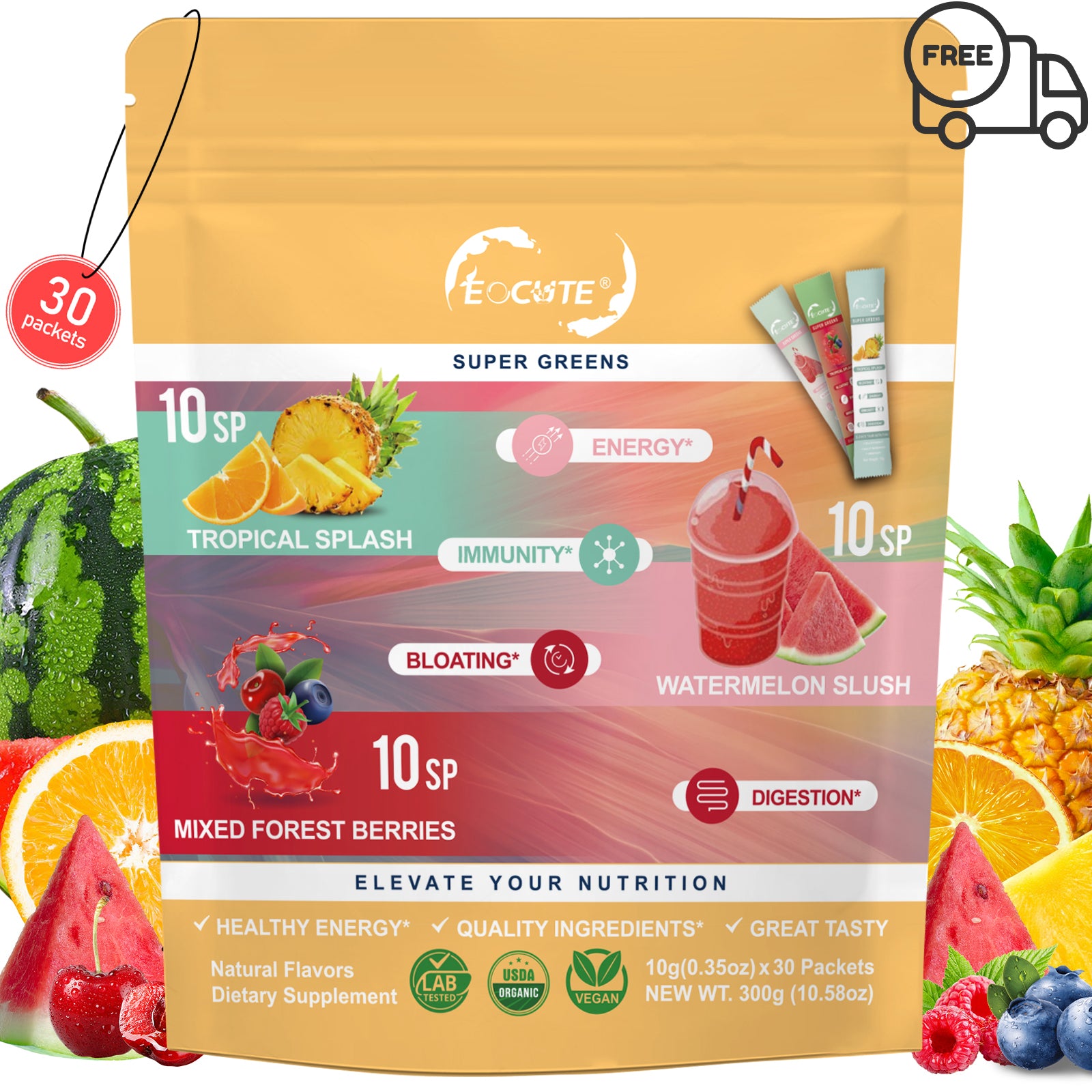 EOCUTE Super Greens Powder to Reduce Bloat, Digenstive Health for Women, Bloating Relief, Gut Health,Skin Care,Support Gut Health, Boost Immunity, Healthy Digestion for Women – Antioxidant Support – Chlorella – 3 flavors-30 packets -