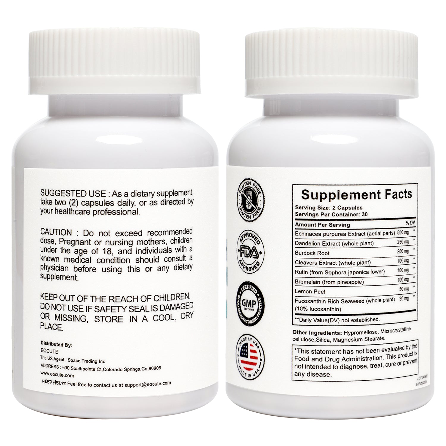 EOCUTE Lymph System Support Supplement   Lymphatic Drainage Supplement with Dandelion Extract, Cleavers, Burdock Powder   Reduce Swelling and Cleanse Lymph Hair/Skin/Nails Supplements Edible Fitness Dietary Healthcare Beauty Optimum